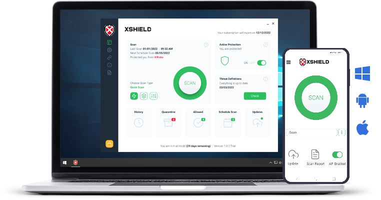 Complete protection for iOs and Android devices with antivirus scanning, app behavior analysis, and anti-theft features. XShield Mobile Security guards your device 24/7 against malware, phishing attempts, and unauthorized access.